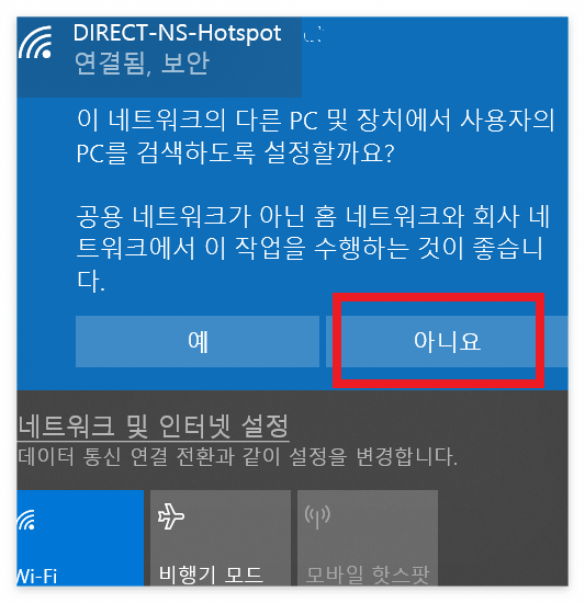 11. DIRECT-NS-HOTSPOT 와이파이를 클릭하여 연결을 클릭합니다.