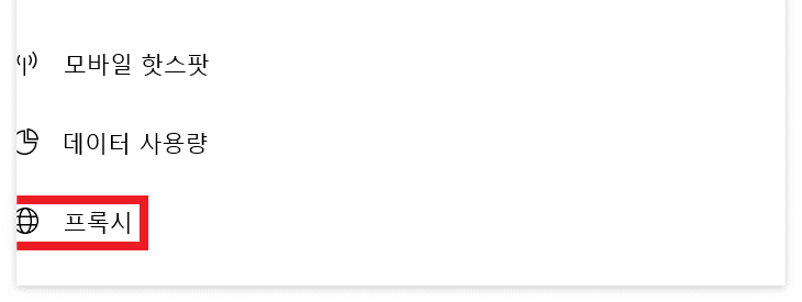 7. 네트워크 및 인터넷에서 아랫부분의 프록시를 클릭합니다.