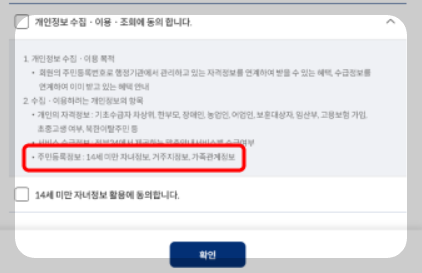 3.14세 미만 자녀의 맞춤아내 조회는 법정대리인의 동의가 있으면 가능하며 동의가 끝나면 행정기관이 보유하고 있는 개인자격및 수급정보를 활요하여 맞춤안내를 조회합니다.
