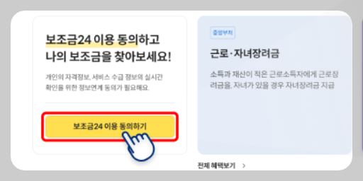 가까운 주민센터를 방문하여 보조금24 신청서를 제출하면 우리가족이 받을수 있 보조금을 확일할수 있습니다.