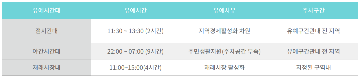 주정차 유예시간및 유예구간 은 지역 경제활성와 주차공간부족 또 재래시장 활성화를 위해 각 지자체마다 구역을 지정하여 주차단속 유예시간만큼은 주차단속을 하지 않고 유예해주는 제도입니다.