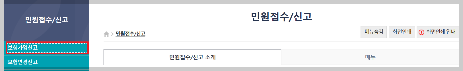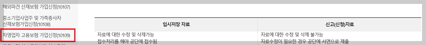 5. 보험가입신고를 클릭하여 자영업자 고용보험가입신청(10109)을 클릭합니다.