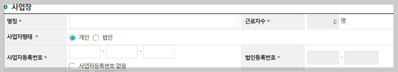 6. 보험가입대상자 사업주중 50인 미만사업주와 근로자를 사용하지 않는사업주 유형중 여건에 맞는 사업주유형을 선택합니다.
