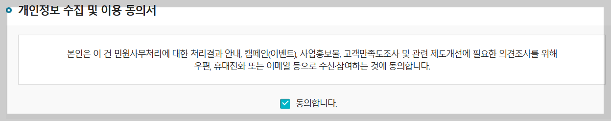 8. 개인정보 수집및 이용동의서에 체크합니다.