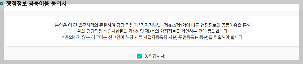 9. 행정정보 공동이용 동의서에 체크합니다.