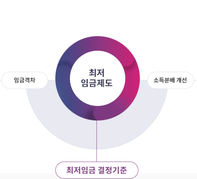 최저임금제도란 국가가 노동자와 사업자간의 임금결정과정에 개입하여 임금의 최저수준을 정하여 사용자에게 이 수준 이상의 임금을 지급하도록 법으로 강제함으로써 저임금 근로자를 보호하는 제도로써 저임금 해소로 임금격차가 완화되고 소득분배 개선에 기여와 근로자에게 일정한 수준 이상의 생계를 보장해 줌으로써 근로자의 생활을 안정시키고 근로자의 사기를 올려주어 노동생산성이 향상 에 의미를 두고 있습니다. 그러므로 적절한 최저시급으로 근로자가 매년 인상되는 물가상승에 대응할 수 있는 최저수준 임금을 보장하여 근로자의 생활안정과 노동력의 질적 향상을 위한 사회 보호제도입니다.