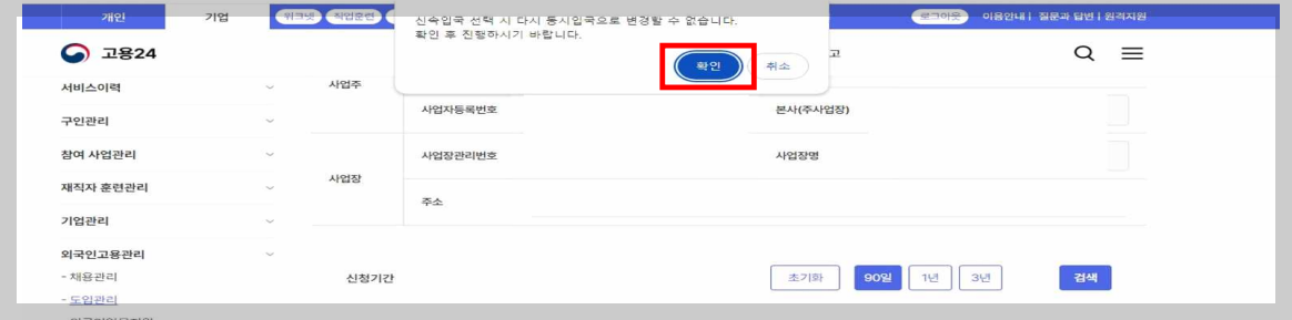 - 동시입국을 선택했더라도 1회에 한해 신속입국으로 전환할 수 있고, 전환시점까지 비자가 발급된 근로자들은 동시입국 진행 -신속입국 전환 후 동시입국으로 재전환은 불가