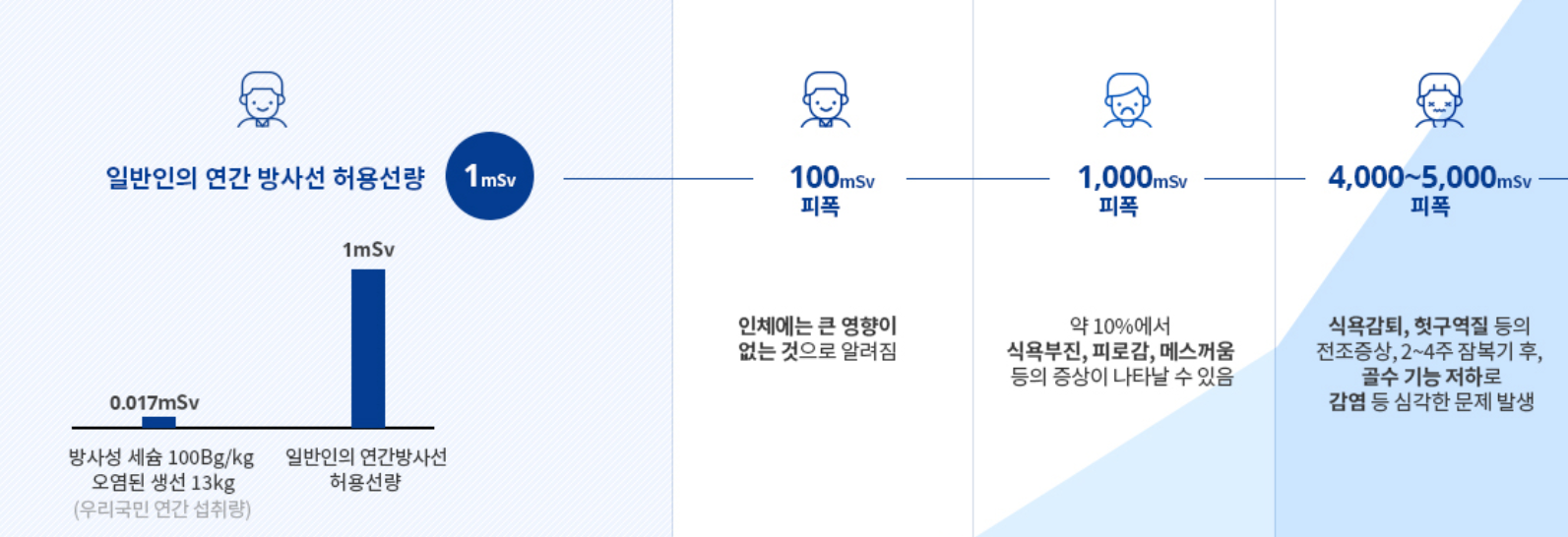 막연하게 방사능공포에 휩써여 있는 것보다 방사능식품 섭취 시 인체에 주는 영향을 제대로 알고 있는 것이 좋을 거 같습니다.