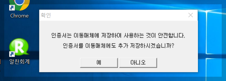 6. 공동인증서 갱신 완료 된후 인증서를 휴대폰이나 USB에 저장하고자 할 경우에는 예를 선택하여 저장을 진행하시거나 아니오를 선택하여 공동인증갱신을 마칩니다.