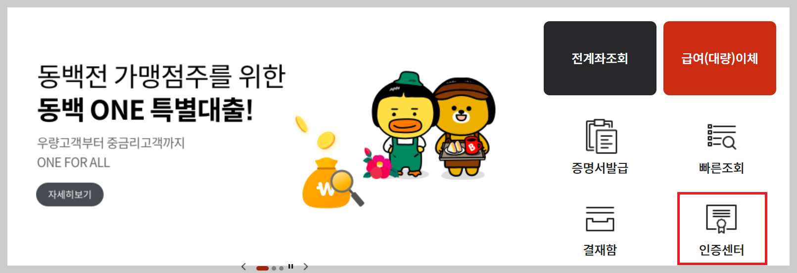 1. 사업자및 개인이 발급받은 범용 공동인증서 은행홈페이지에 접속합니다. 모든은행이 동일하게 진행되오니 참조하시기 바랍니다.