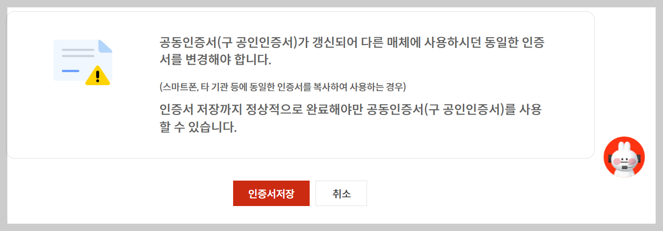 ▣ 범용 공동인증서 갱신 인증이후 바로진행하기