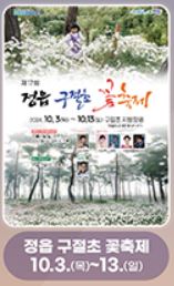 | 22 | 전북 정읍시 | 정읍 구절초 꽃축제 | 10.3.(목)~10.13.(일) | 정읍 구절초 지방정원 | |