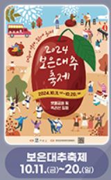 | 14 | 충북 보은군 | 보은대추축제 | 10.11.(금)~10.20.(일) | 보은 뱃들공원 및 속리산 일원 | |