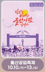 | 31 | 울산광역시 | 울산공업축제 | 10.10.(목)~10.13.(일) | 울산 태화강국가정원 등울산시 일원 | |