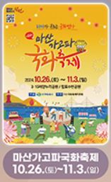 | 34 | 경남 창원시 | 마산가고파국화축제 | 10.26.(토)~11.3.(일) | 3.15해양누리공원 및합포수변공원 | |