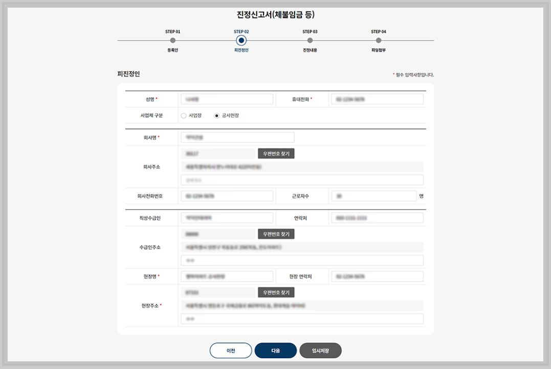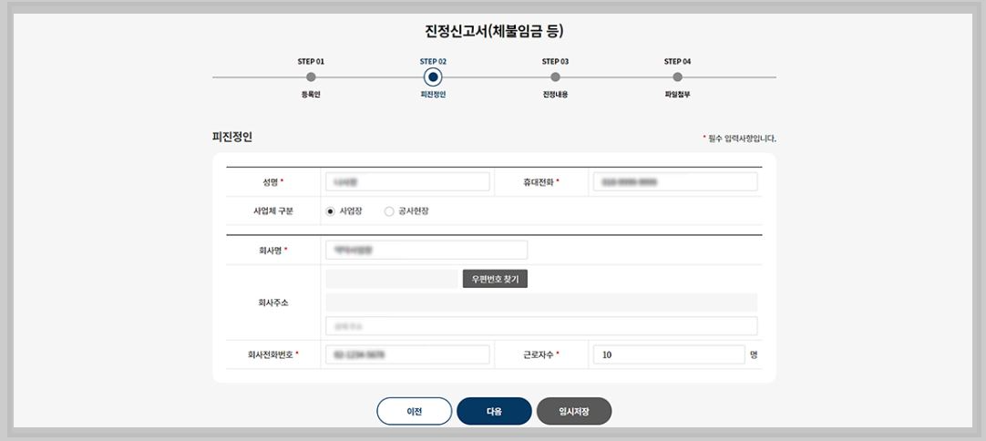 4.2 피진정인 정보 입력-피진정인(사업장) 정보 입력하기