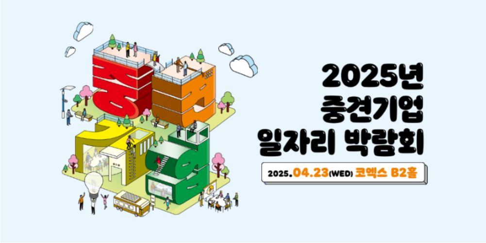 ‘2025년 중견기업 일자리 박람회’가 오는 4월 23일(수) 코엑스 B2홀에서 개최됩니다.올해10회차를 맞이한 ‘중견기업 일자리 박람회’는 국내 유일의 중견기업 일자리 박람회입니다. 대한민국을 대표하는 우수 중견·중견후보기업 100여 개사가 참가하는 이번 박람회는 구직자의취업 역량강화를 지원하고 기업과 인재 간의 실질적인 매칭이 이뤄지는 기회의 장이 되도록 마련하였습니다.