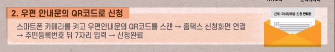 스마트폰 카메라르 켜도 우편안내문의QR코드를 스캔=>홈택스 신청화면 연결=>주민등록번호 7자리 입력=> 신청완료
