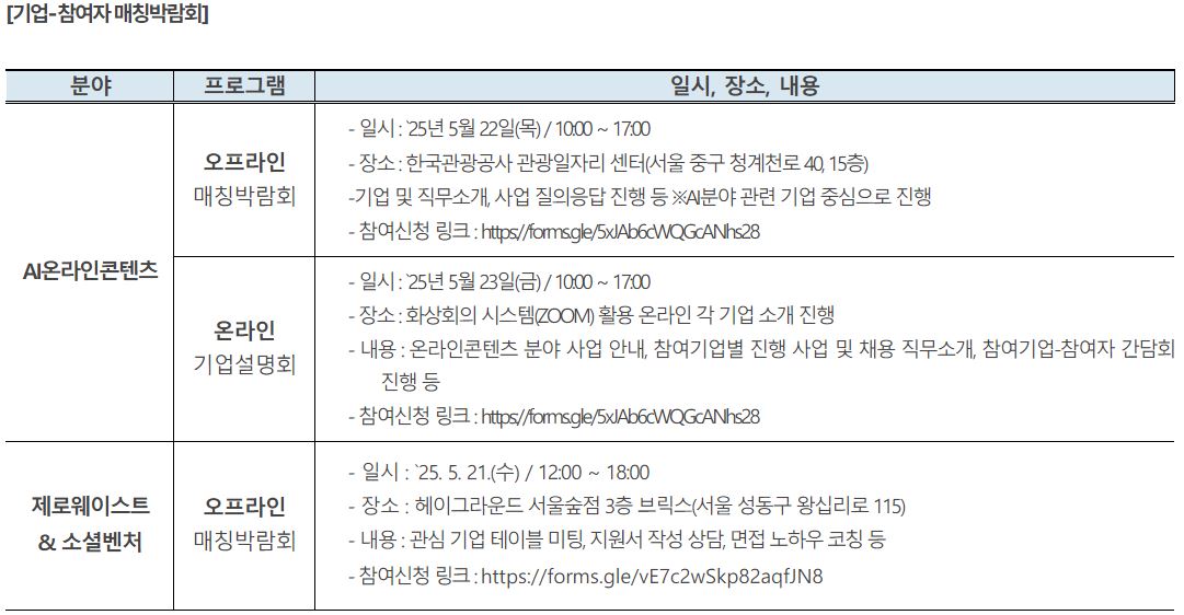 - 온라인콘텐츠 분야 : 105개 기업 315명 모집