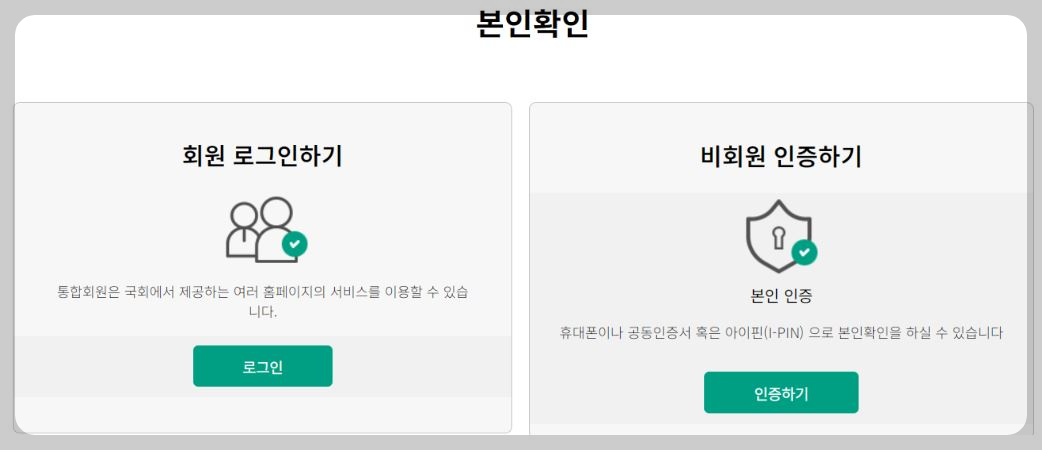 3. .회원로그인과 비회원 본인인증을 선택합니다.