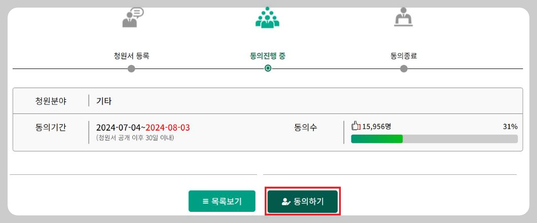 5. 청원내용에 동의하기를 선택합니다.