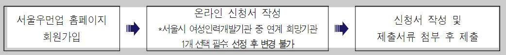 ※ 서울우먼업포인트 : 직접적인 구직활동을 위한 본인의 교육훈련비, 도서 구입비, 자격증 취득시험응시료, 자녀 일시돌봄비용 등으로 사용 가능. 목적 외 사용 시 환수될 수 있음