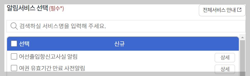 5.국민비서 알림 중단 및 신규서비스 안내신청을 선택합니다. 서비스 중단 선택시 알림이 오지않고, 알림 서비스 추가, 변경시 안내를 받을 수 있습니다.