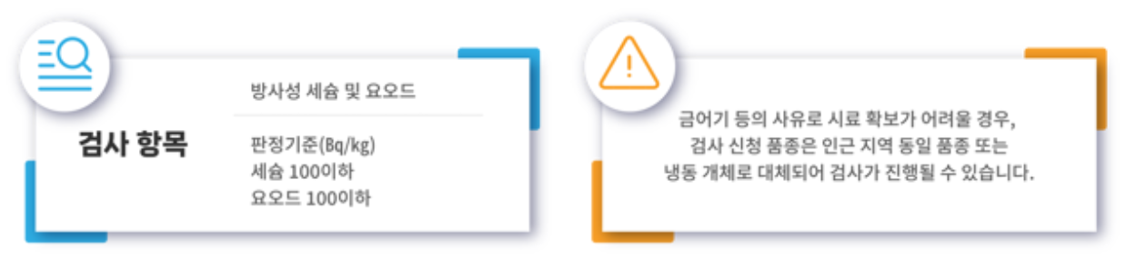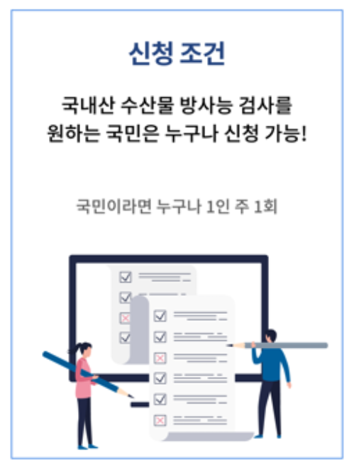 국민신청 방사능 검사 신청은 최대한 많은 국민들께 기회를 드리기 위해 1인당 1주일 이내 1회 1품목으로 제한을 두고 있습니다.