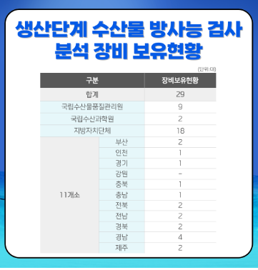 생산단계 수산물 방사능검사 분석 장비 보유현황