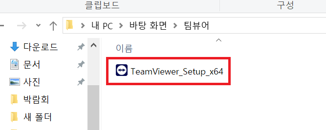 1. 여러 검색포털에서 팀뷰어를 검색하여 다운로드를 받거나 필자가 준비한 파일을 설치하여 진행하셔도 무방합니다.