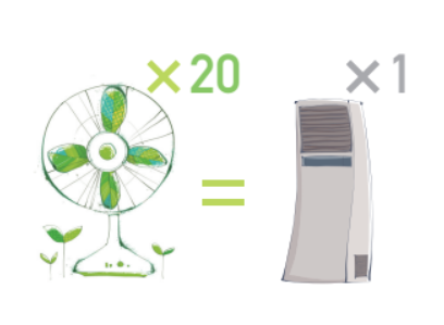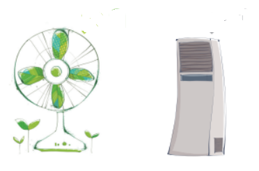 냉방기기는 여름철 전력피크의 주원인으로 특히 에어컨은 선풍기에 비해 훨씬 더 많은 전력을 소비합니다