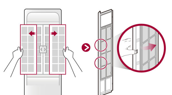 1. 모델별 필터 탈착 방법을 참고하여 극세 필터를 열어주세요.
