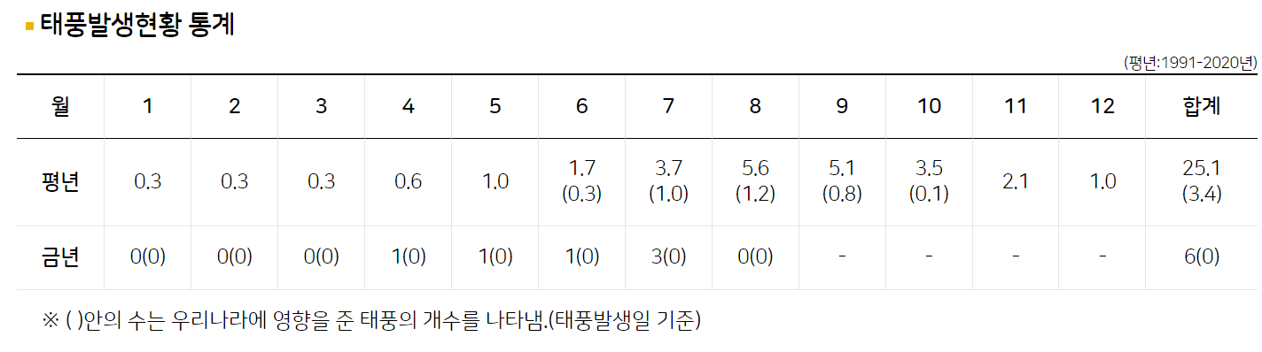 ▣ 기상청 태풍발생현황 통계