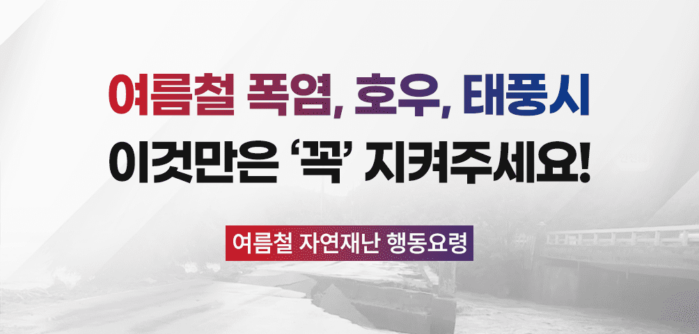 자연재난에 따른 피해를 최소화할 수 있도록 기상예보에 귀 기울여 주시고, 무리한 야외활동을 자제하여 스스로의 안전을 지켜주시길 당부드립니다. 소중한 생명을 살리는 확실한 행동요령을 꼭 확인하시고 안전한 여름 보내시기 바랍니다!