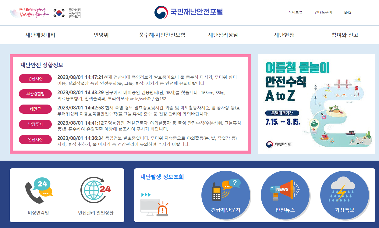 기상청 바로가기 | 국민재난안전포털 바로가기 | 행정안전부 바로가기 |