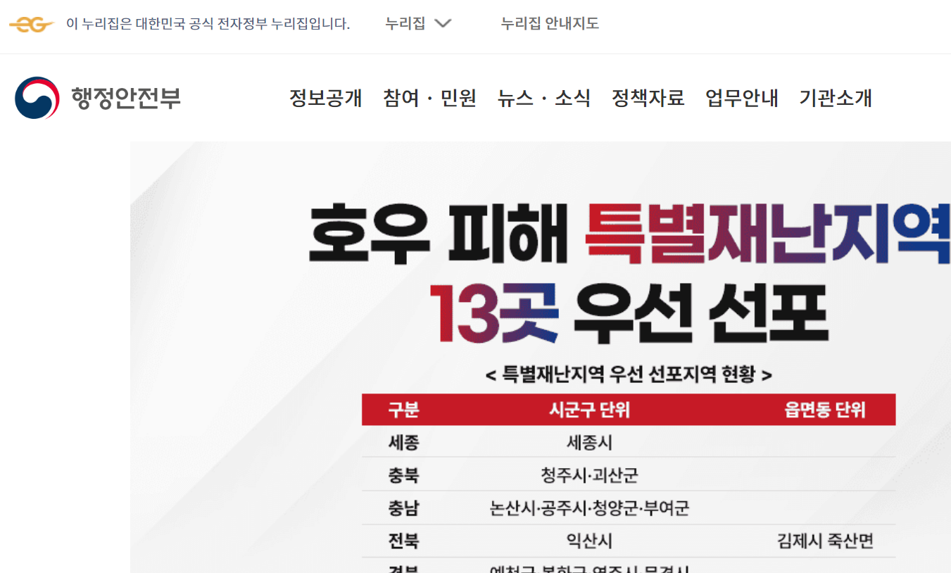 | 기상청 바로가기 | 국민재난안전포털 바로가기 | 행정안전부 바로가기 |