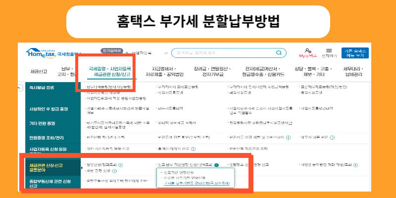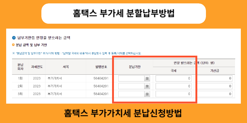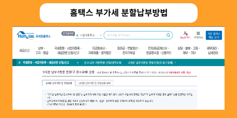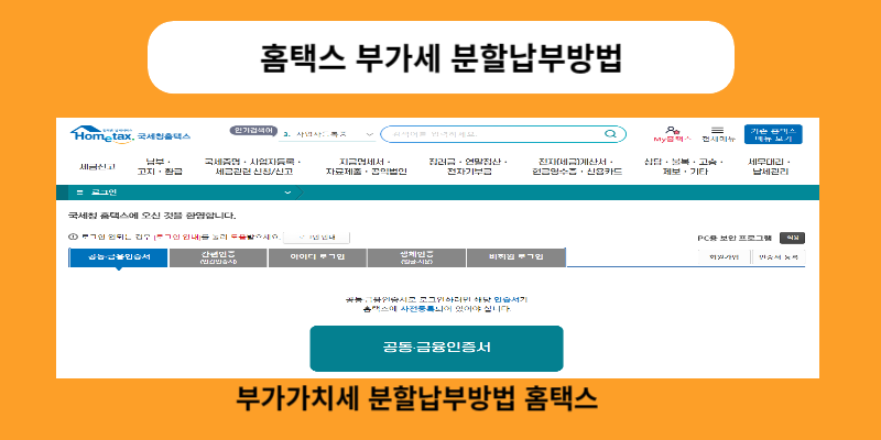 1분기 부가가치세 신고가 엊그제 같은데 또 2023년 2기분 10월 부가가치세 예정고지 우편이 날아왔습니다. 소상공인들 세금 내다 1년을 보낸다는 어떤 사장의 말씀이 실감 나는 일이입니다. 자금이 충분한 소상공인사장님들은 별 걱정 없이 세금을 납부하겠지만 저처럼 불의의 사고나 기타 갑자기 매출이 떨어진 사장님들은 해결 방법이 몰라 근심이 많을 거라 생각합니다. 부가세 분할납부방법 및 분납신청방법을 아래 이미지와 함게 설명해 드리오니 참고하시길 바랍니다.부가세 분할납부방법 및 분납신청방법이 어렵지 않으나 모르고 잘못기입하시면 거절 당할수 있습니다. (먼저 홈택스 로그인 하셔야합니다. 아래 링크를 통해 홈택스 접수 후 로그인 하시길 바랍니다.)