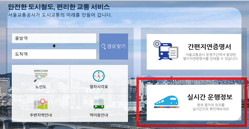 서울지하철 실시간 운행정보는 서울시 교통공사 홈페이지 사이버스테이션을 이용하시면 실시간 지하철 운행정보(이동동선)를 확인할수 있습니다. 현 지하철의 이동하는 역과 도착시간을 알수 있으니 아래 서울지하철 사이버스테이션 링크를 통해 홈페이지 접속후 서울 지하철 실시간 운행정보를 이용하시길 바랍니다.