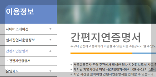 서울지하철 지연 증명서