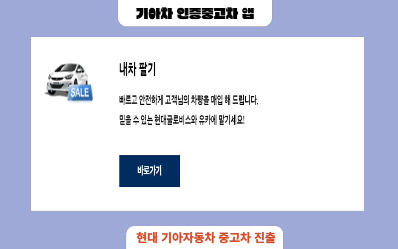 현대기아차 글로벌기업이 10월 말부터 중고차시장에 본격적으로 진출한다고 밝혔습니다. 이는 중고차시장 진출 선언 이후 3년 만의 진출임으로 3년간 많은 것을 준비하지 않았나 생각합니다. 우선 기아차 인증중고차 앱을 출시하였고 앱을 다운로드하여 사용한 본결과 기아차 내차시세 보기, 기아차 내차팔기, 기아차 인증 중고차 사러가기, 버튼이 있어 기아차 매매사이트 홈페이지로 바로 연결할 수 있습니다. 아래 링크를 통해 기아차 인증중고차 앱으로 다운로드하시기 바랍니다.