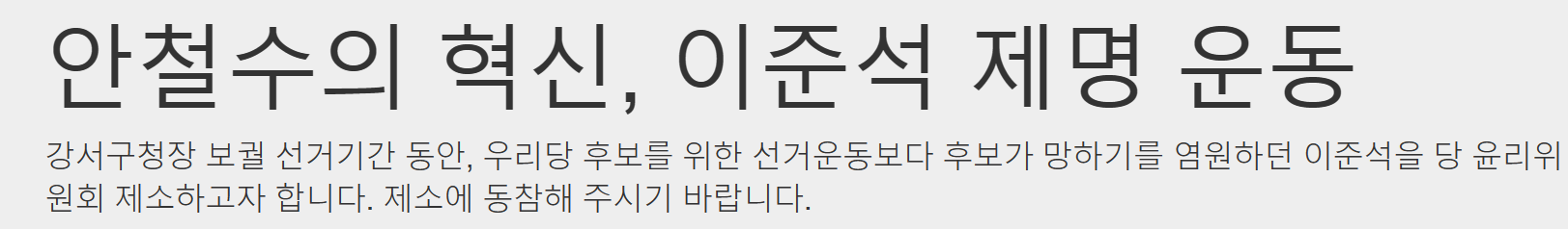 이준석 제명 서명운동에 관심이 있거나 안철수의원이 만든 이준석 제명 서명운동 홈페이지가 궁금하신 분들은 아래 링크를 통해 확인 하시길 바랍니다.