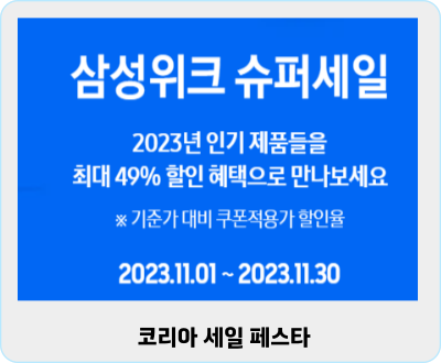 매년 11월이며 미국에서는 대대적인 할인행사 블랙프라이데이행사를 개최하고 있으며 중국은 광군제를 개최하고 있습니다. 그리고 한국에서는 코리아 세일 페스타가 있습니다. 한국의세일 페스타 할인행사는 이제 9년차로 긴 역사는 아니지만 점차적으로 자리 매김을 하고 있으며 많은 대기업과 중소기업들이 참여하여 올해는 2400기업들이 코리아 세일 페스타 행사에 참여하고 있습니다.삼성 세일 페스타 홈페이지에서 다양한 할인혜택을 확인하세요.