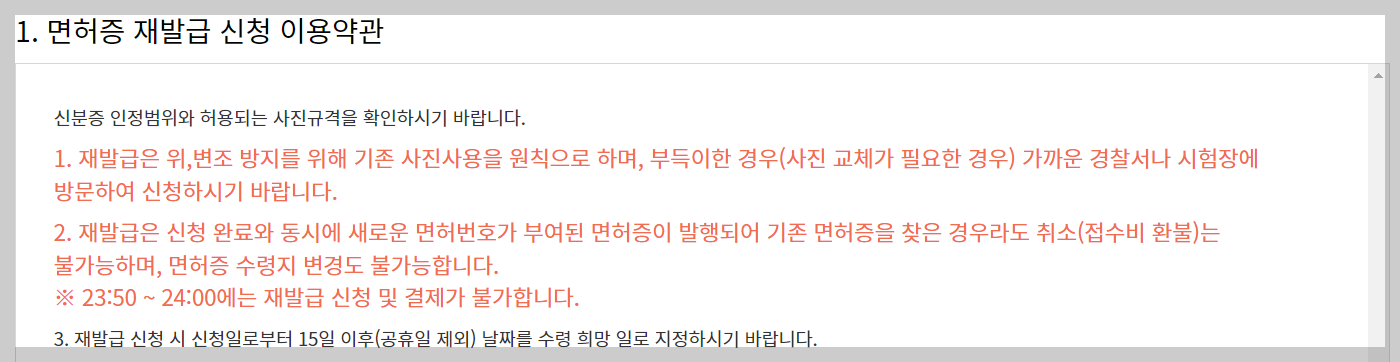 - 운전면허증 재발급 신청 시 사진 제출은 불필요합니다.